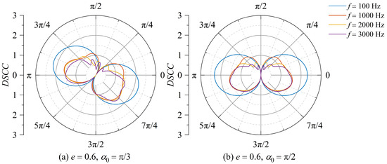 Distribution of DSCC around the elliptical opening with an eccentricity of e = 0.6. (a) Incident angle α0 = π/3; (b) incident angle α0 = π/2.