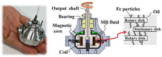 - Kikuchi, T.; Otsuki, K.; Furusho, J.; Abe, H.; Noma, J.; Naito, M.; Lauzier, N. Development of compact MR fluid clutch for human-friendly actuator. Adv. Robot. 2010, 24, 1489–1502. [Google Scholar] [CrossRef]