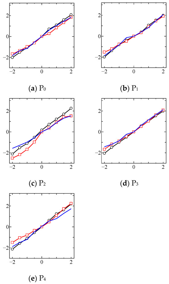 Figure 10 shows the performance of the open-loop force control of the device at each platform position listed in Table 3. The horizontal and vertical axes denote the reference and measured forces, respectively. The circles, squares, and triangles represent the forces in the x, y, and z directions, respectively.