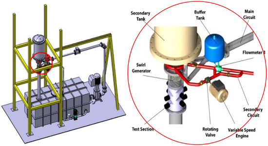 The technique developed by Bosioc et al. [18] was applied to assess the performance of the VO. In doing so, the results for the cases with and without VO were compared. As shown in Figure 4, the new VO was implemented in a secondary circuit of the test rig.