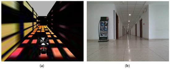 Finally, to further test the performance of VS-SLAM, we tested it in a real-world degraded long corridor. The mobile robot platform is similar to the one used in the simulation platform, as shown in Figure 4. We recorded two sequences in the long corridor, named Real-Corridor-01 and Real-Corridor-02.