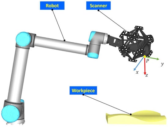 As illustrated in Figure 13, our experimental apparatus includes a UR 10 robot, its corresponding controller, a laser scanner, and the workpiece that requires measurement.