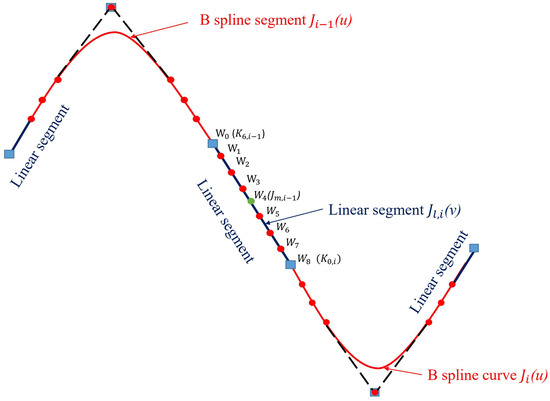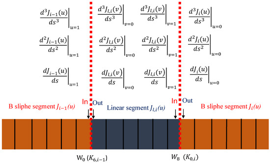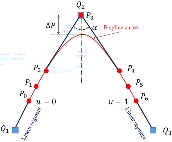 To maintain the integrity of the B-spline curve, achieving third-order continuity at the junction with the linear segment is essential. To achieve third-order continuity at the mentioned junctions, the B-spline curve is configured with a degree of 5 and is assigned 7 control points. The B-spline curve’s third-order continuity at these points is achieved by setting its degree to 5 and its number of control points to 7.