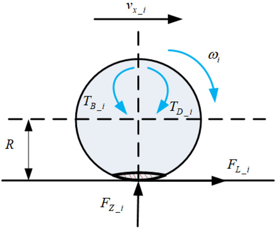 During vehicle operation, the wheels are subjected to various forces, and their force model is illustrated in Figure 2.