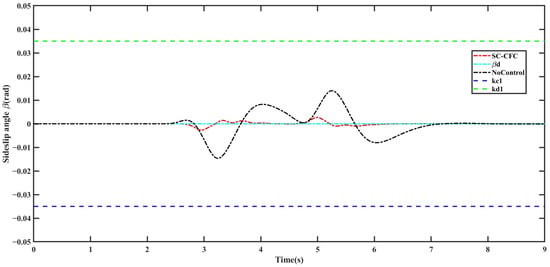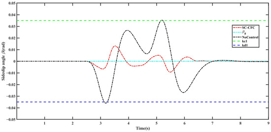 In summary, this paper integrates the advantages of the asymmetric barrier Lyapunov function (ABLF) and CFC to address the yaw stability control problem of intelligent vehicles with full-state constraints. The proposed control algorithm explicitly incorporates constraint boundaries for the vehicle’s sideslip angle and yaw rate, and a yaw stability command-filtered control strategy based on ABLF is developed. The effectiveness of the proposed control scheme is validated through simulation experiments, providing theoretical support and technical reference for practical applications in intelligent vehicles. The proposed control method offers the following advantages: