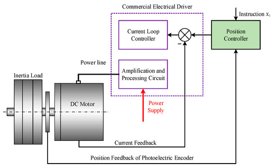 The servo system depicted in Figure 1 is a positioning system in which the inertial load is directly driven by a permanent magnet synchronous motor (PMSM). The control objective is to ensure that the inertial load closely follows a specified smooth motion trajectory . Typically, the bandwidth of the motor current loop is much greater than that of the velocity and position loops, allowing the current dynamics to be neglected. The dynamic characteristics of the servo system are described by (1).