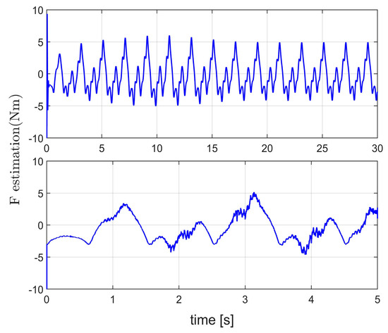 The unknown disturbance F is estimated using the RL auxiliary controller, and the estimated result is . represents the estimation error, which is further detailed in Section 4.