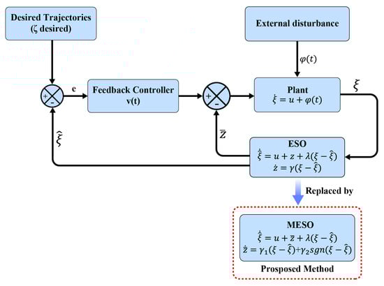 To address the challenge of accurately estimating unknown bounded disturbances, a novel disturbance observer has been designed. Figure 1 illustrates the block diagram of the proposed ASTC-based MESO scheme for a plant system.