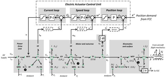 - The actuator sensors (measuring, for example, the windings currents, motor rotor speed/angle, and rod extension) with their supply and conditioning;