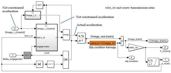 The simplification of lumped-parameter models can be achieved by resorting to well-established approaches. The most common ones are the model order reduction algorithm (MORA) and the singular perturbation method (SPM) [33]. However, they are difficult to apply when the intent is to keep an RT access and a physical meaning of some internal variables of interest, in particular for advanced control or health monitoring. These variables are, for example, the motor winding currents or voltages, the motor rotor speed, the actual gap in the backlash effect, or the heat-generated energy losses.