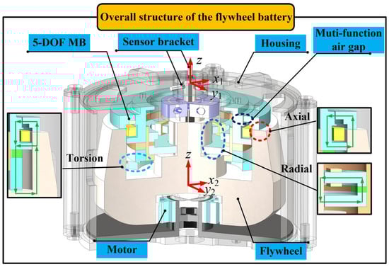 - Zhang, W.; Lv, S. A novel magnetic suspension flywheel battery with a multi-function air gap. Energies 2023, 16, 6795. [Google Scholar] [CrossRef]