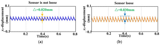 Comparison of rotor offset when the sensor is loose and when the sensor is not loose: (a) The offset of the rotor when the sensor is not loose. (b) The offset of the rotor when the sensor is loose.