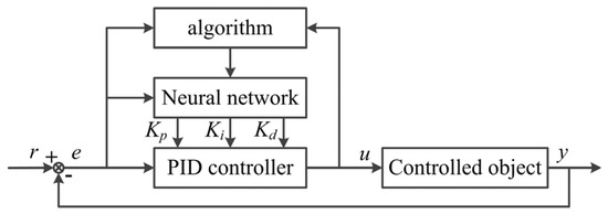 In order to improve the control performance of the traditional PID controller, most of the existing research uses neural network methods to optimize the PID controller [16,17,18]. Neural networks have strong nonlinear approximation abilities and learning abilities, and their structure and learning algorithms are simple and clear [19]. Therefore, the indirect self-tuning control strategy produced by combining the neural network algorithm with PID control can automatically adjust the parameters of the controller. The optimal combination of PID control is realized to make the system run with better performance. Neural networks also have some problems, such as their convergence process, which has two significant defects. First, the convergence speed cannot be guaranteed, usually requiring thousands of iterations or more. Secondly, it is easy to fall into local minima due to the improper selection of initial weights in training. In addition, there is no recognized theoretical derivation for setting network structural parameters and operational parameters, which are often selected according to experience. Once the selection is improper, the system performance will deteriorate and even lead to failure of convergence.
