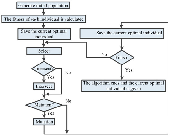 The basic flow of the genetic algorithm for optimizing the connection weights of the BP neural network.