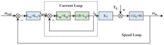 Permanent magnet synchronous motor speed-loop control block diagram.