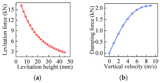 Electromagnetic force characteristics in the dynamic model: (a) Levitation force; (b) Damping force.