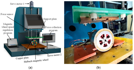 The experimental protocol involved precise alignment of component centers via servo-controlled positioning. A fixed air gap between the magnetic wheel periphery and the conductive plate surface was established using a servo motor. Following Le configuration (2–10 mm range, 1 mm increments) and transducer calibration, the rotational drive system was energized to generate levitation forces. Data acquisition commenced upon force stabilization, seeing steady-state force averages within ±0.3 N fluctuation bands.