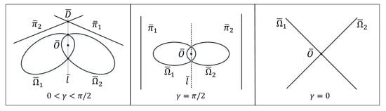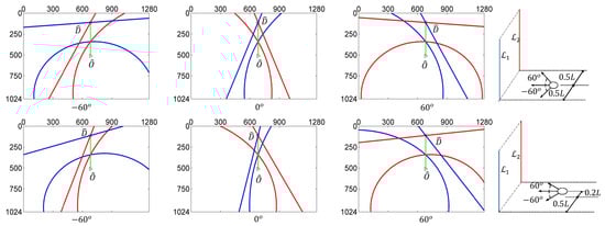 If two 3D parallel lines and are presented in the camera FOV, as shown in Figure 2, the intersection points and of two corresponding conic curves and and image center should lie on the same line . Since preserves incidence, three lines, , , and , will intersect at the same point , and accordingly, , , and will also intersect at the same point in .