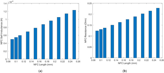(a) The self−inductance and (b) resistance of the NFC under different NFC lengths.