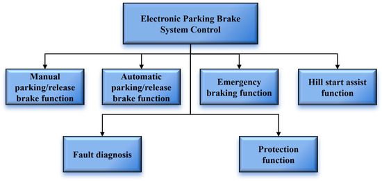 Figure 3. According to the driving demand, the parking brake function, automatic parking/release function, emergency braking function, fault diagnosis and protection function, ramp assist function, and other functions are designed.