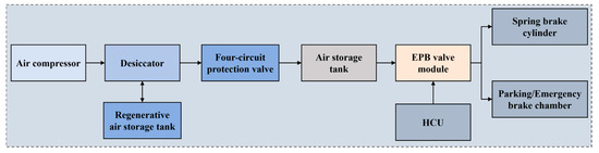 - Soudagar, I.A.K.; Tota, P.D. Modelling and Simulation of Electro-Pneumatic Parking Brake System for Real Time Estimation of Pressure Inside Parking Brake Chamber. 2022. Available online: https://odr.chalmers.se/items/268f3f40-d299-4eaa-846d-ceef0cb76152 (accessed on 3 March 2025).