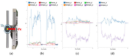Figure 7a in which it is possible to observe the data captured by the force–torque sensor.