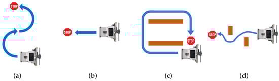 Figure 6d depicts the test to understand users’ path to reach the final point. The rotation to avoid the obstacle was left free to the volunteer, but everyone followed the same path.