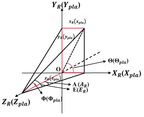 By referring to Figure 6, the target in the Risley prism’s polar coordinate system can be transformed into the corresponding values in the motion platform’s Cartesian coordinate system, as well as into the values in the motion platform’s polar coordinate system. The rotation axis is treated as a unit vector.
