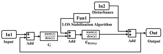 The disturbance rejection simulation model of the Risley prism system is constructed based on (13) and (14), as shown in Figure 11.