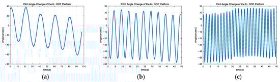 Pitch angle changes in the 6-DOF platform. (a) First set. (b) Second set. (c) Third set.