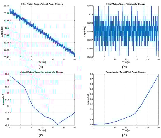 Furthermore, we conducted capture and tracking experiments on a moving target. The 6-DOF platform was controlled via computer software to follow a trajectory. The motions of the 6-DOF platform in the azimuth and pitch directions, measured in real-time by the IMU, are shown in Figure 24.