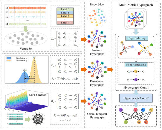 - A method for constructing multi-metric fused hypergraphs based on various similarity metrics is proposed. This involves creating a multi-metric weighted hypergraph by integrating instance hypergraphs, distribution hypergraphs, and spatiotemporal hypergraphs, which comprehensively describe the relational features among samples.