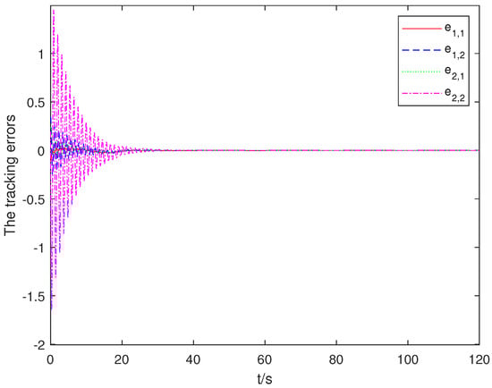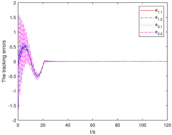 From the derivation above, it is clear that to achieve the desired control performance, the tracking error system must converge stably. Specifically, within the fixed time , the tracking error should be reduced into a small residual set in practice, characterized by bounds dependent on system parameters and approximation errors.