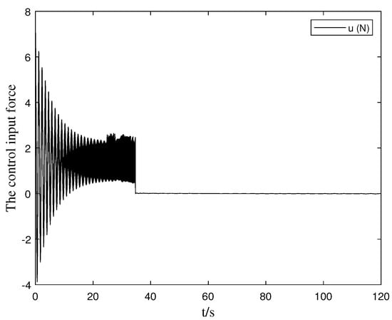 Figure 4 depicts the temporal evolution of neural network weight parameter estimates, confirming bounded convergence within the specified timeframe. This demonstrates successful identification of the unknown dynamic characteristics, enabling the system to effectively counteract actuator impairments. Figure 5 shows the control input response, exhibiting appropriate stability characteristics throughout operation.