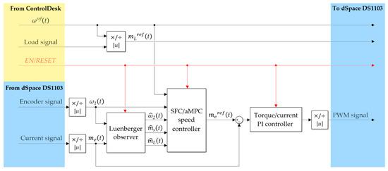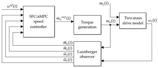 As both of the considered controllers rely on the mathematical model of the object, feedback loops of the state variables are required. In industrial applications, a trend towards sensorless drivers has emerged, involving the measurement of only the motor speed and electromagnetic torque and the estimation of the other state variables. It is worth noting that although the motor speed is measured, its estimate is utilised in the control structure. This approach serves to avert the conflation of measured and estimated speed signals, due to the potential delay introduced by the observer.