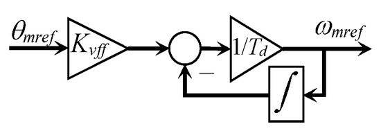 If a PI controller for speed is included, then it contributes to the integral action, and the position control can be simplified using a proportional control law. However, this configuration is slow to transmit fast position changes to the speed controller because the speed command takes place once the position error arises. Hence, the control behaviour can be improved by injecting the required speed directly into the speed control loop in a feedforward manner [49]. This feedforward–feedback configuration for the position control loop is shown in Figure 6.