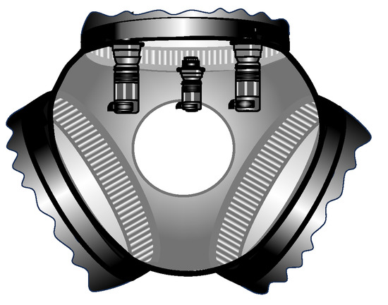 However, the idea to attach several actuators for the same activity has a weak point given by the fact that all actuators in the same joint are screwed to the same gear rim despite drives of the same series and type not being exactly identical. Therefore, torques and speeds are not equal in general, the rigid gear rim is exposed to unbalanced loads, and motors are forced to work at different internal conditions because of an external setting.