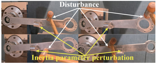 In systems characterized by inherent uncertainties, these uncertainties are typically parameterized by a set of real values. J generally exhibits minimal perturbations, remaining within 1% of its nominal value, even with structural changes or added payloads. k may vary by up to 5%, reflecting material degradation or mechanical property changes under load. b, being the most variable parameter, is assumed to fluctuate by as much as 30%, influenced by factors such as friction, gearbox degradation, and component interactions [30,31]. These assumptions capture the common behavior of robotic systems, thereby improving reliability and adaptability in practical applications.