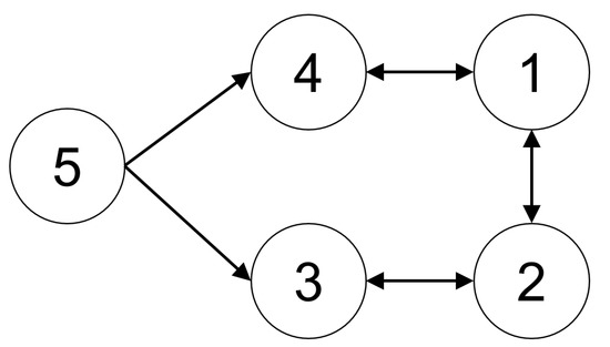 The simulation consisted of a multi-agent system with the network topology illustrated in Figure 1. The system included four follower agents and one leader agent, where agent 5 was designated as the leader.