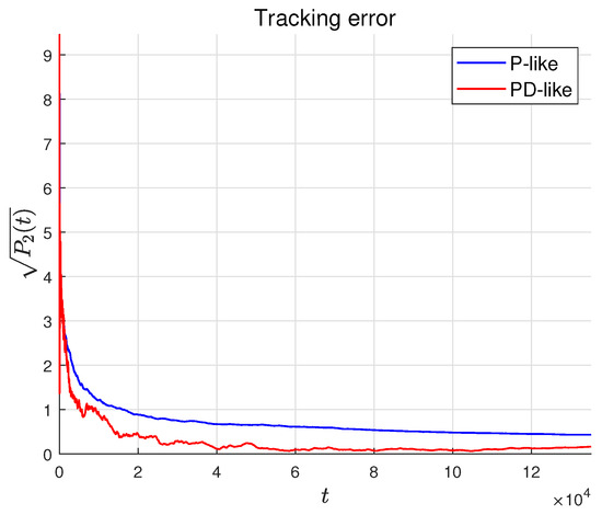 In comparison to state updating [24] using the P-like control algorithm, parameter and item are added to state updating Equation (16) with the PD-like control algorithm. The parameter is constant, and we can obtain the property of item with (11) as follows: