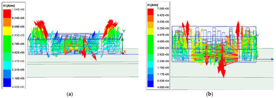 Distribution cloud maps of the magnetic field strength for yokes with thicknesses of 2 mm and 20 mm are shown in Figure 4. According to the simulation results, the magnetic attraction force varies with the thickness of the yoke, as shown in Table 3.