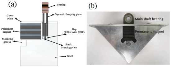 Therefore, permanent-magnet-type MR dampers attract widespread attention for their higher safety. It was reported by Liu et al. [28] that the damping force of an MR damper increased from 0.56 kN to 2.32 kN by embedding permanent magnets with different arrangement angles to alter the magnetic field direction and strength. It was reported by Kim et al. [29] that the magnetization zone was adjusted by modifying the MRF housing shape in a permanent-magnet MR damper, and the highest damping force of 28 N was obtained. It was shown by Khedkar et al. [30] that the damper force of the MR damper under the magnetic field of 7000 G is higher than that of 2000 G and 4000 G. These studies confirm that the rotor system vibrations can be effectively controlled by permanent-magnet MR dampers, and the factors such as magnetic pole orientation, housing geometry, and magnetic field strength all will significantly affect the damper force.