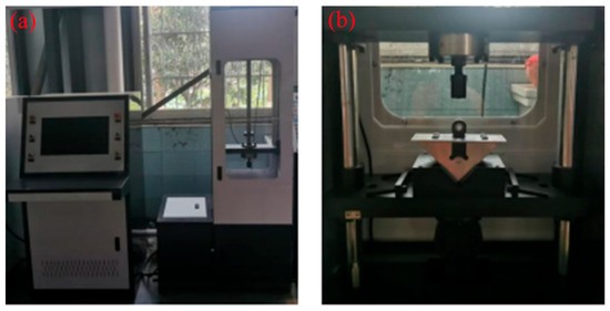 The test bench of mechanical properties: (a) test bench, (b) fixture.