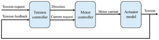 Model-based design methods have been widely applied in the development of complex mechatronic systems [], and this paper will also adopt this approach to designing the control strategy for the proposed actuator. This section will present the design process for the actuator’s closed-loop tension control strategy and the tendon length observation algorithm.