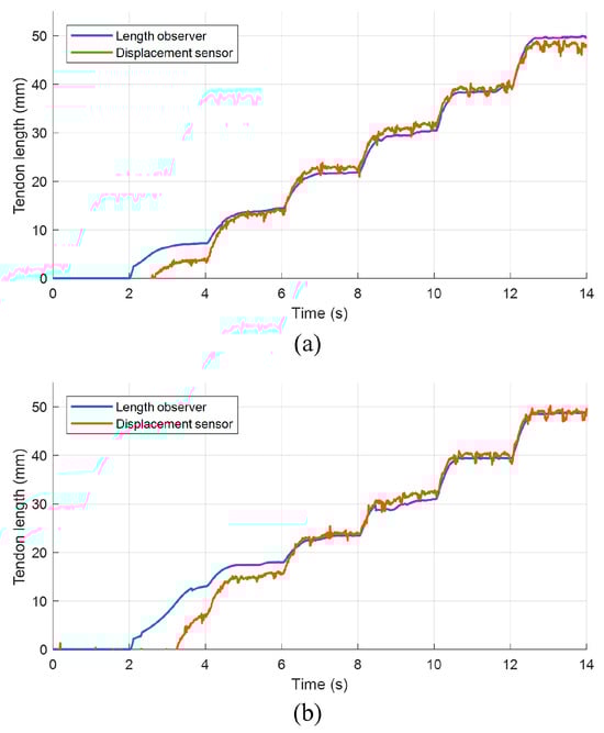 Results of tendon length observer tests: (a) test result #1; (b) test result #2.