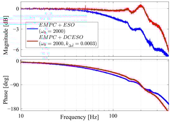The effectiveness of the disturbance estimation can also be observed in the frequency domain. Figure 10 illustrates the bandwidth of the ESO + DCESO in a Bode diagram. A current sweep signal from 1 Hz to 600 Hz with an amplitude of 0.5 A is provided as the disturbance input, while the output represents the estimated disturbance.
