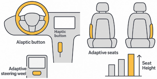 Finally, bio-inspired proprioceptive systems further enrich HMI design. Plum et al. [44] highlighted soft underwater fins capable of adjusting their actuation based on external stimuli, an approach transferable to steering wheels or seats that respond to driver engagement, alertness, or collision conditions. Chu et al. [45] reinforced the importance of actuator–sensor hybrids and resilient control architectures, especially in systems requiring fault tolerance under variable stimuli. These features align closely with the demands of autonomous HMI systems, which must offer fail-safe tactile alerts and adaptive ergonomics under both routine and emergency scenarios.