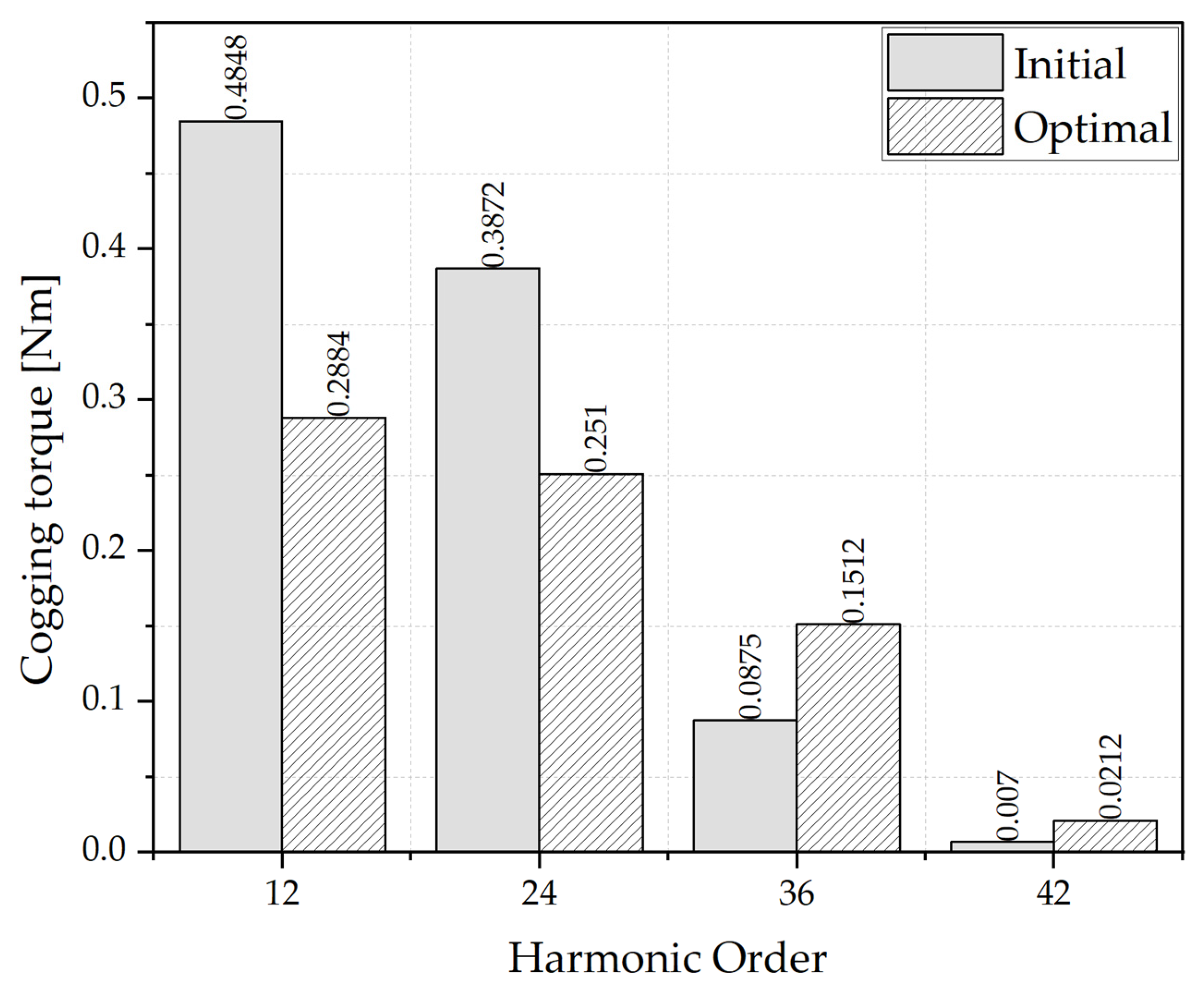 - The analysis confirmed that the optimized asymmetric dummy slot structure is not only a geometric modification but also a critical design element that significantly enhances harmonic suppression and reduces torque ripple.