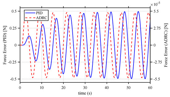 Force error comparison of PID- and ADRC-based constant-force control systems.