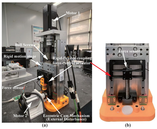 The experimental platform (Figure 9) was developed to evaluate the efficacy of the rigid–flexible coupled force control actuator (Figure 10) utilizing PID and ADRC control techniques. The prototype comprises three primary components: